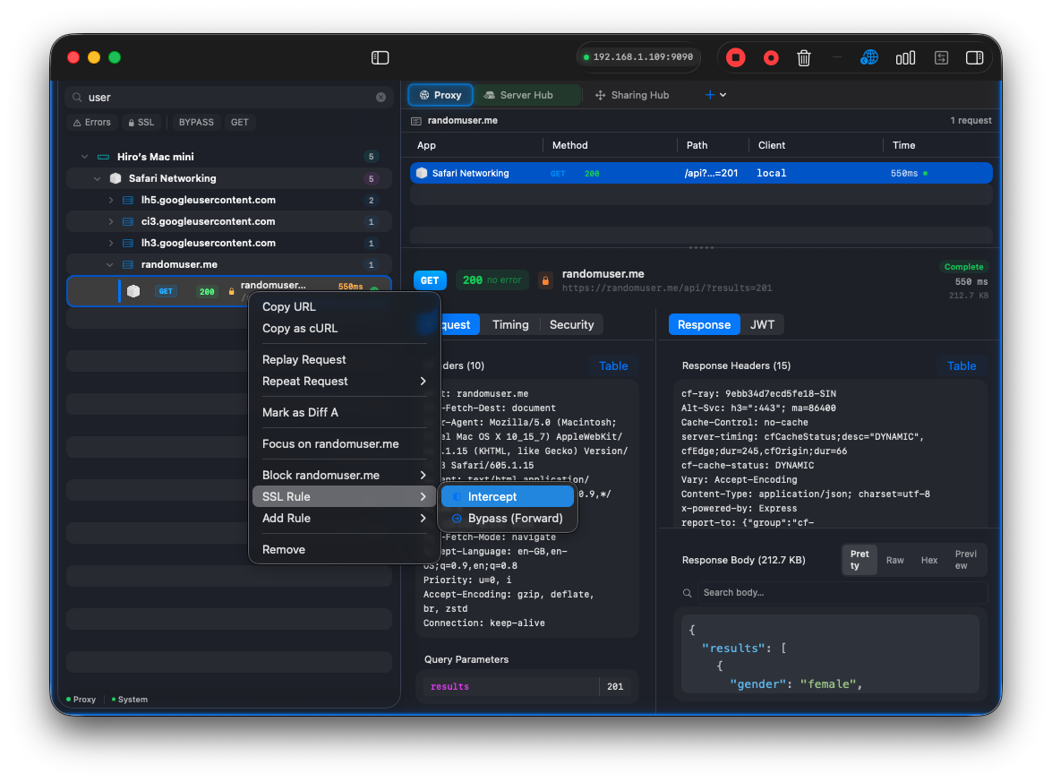 Inspect, debug, and modify HTTP/HTTPS traffic from any app on your Mac or connected devices — without slowing you down.